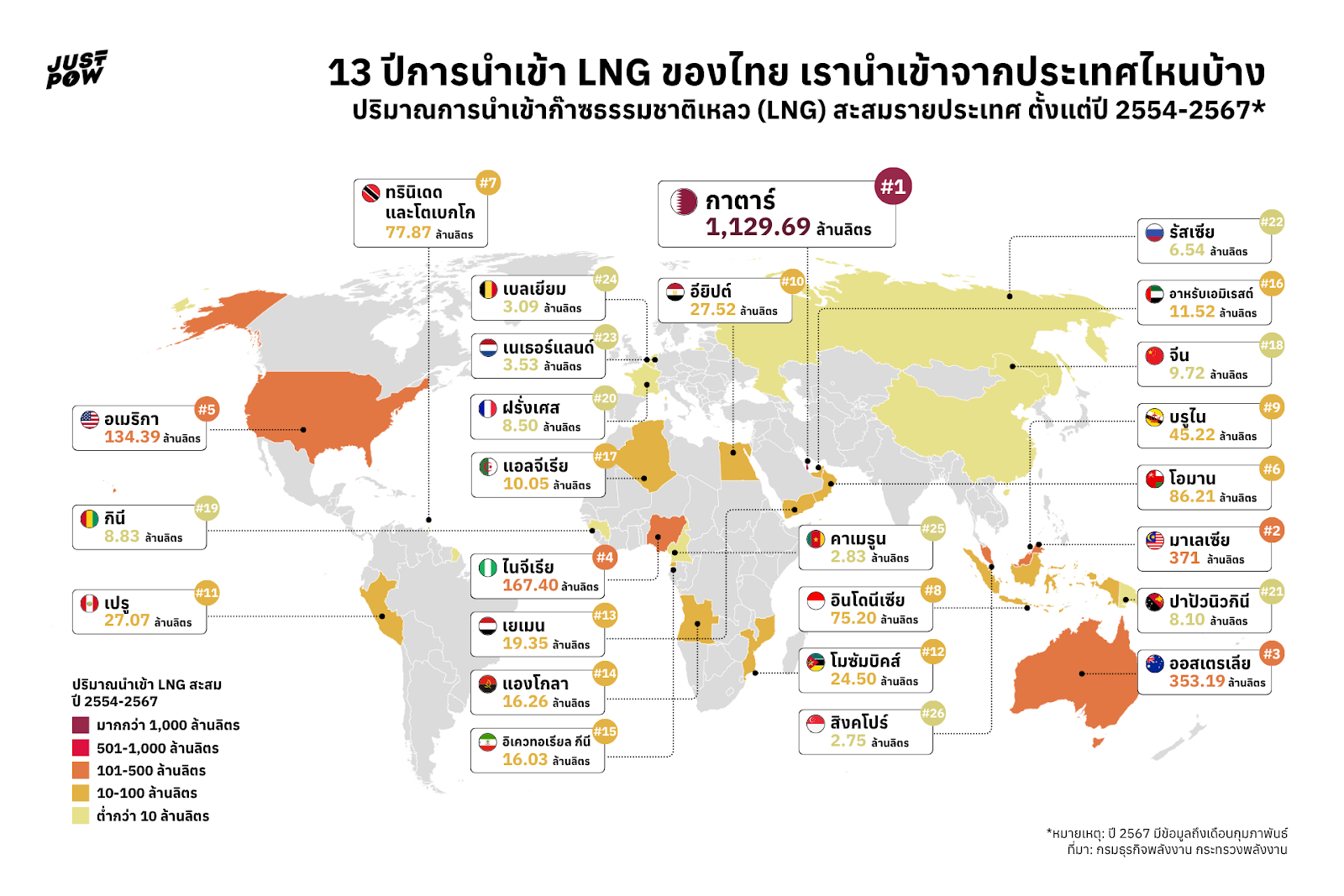 13 ปีการนำเข้า LNG ของไทย เรานำเข้าจากประเทศไหนบ้าง